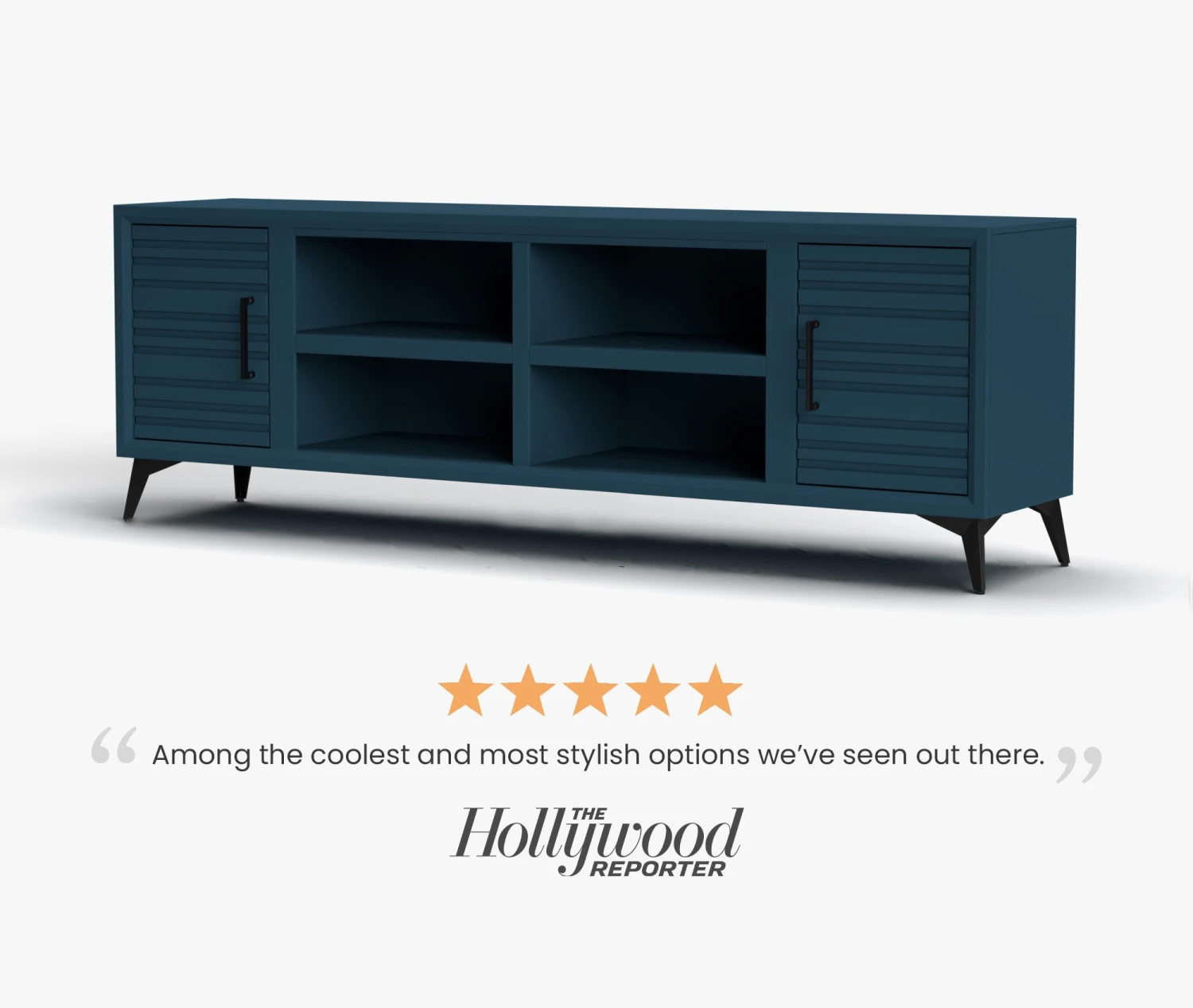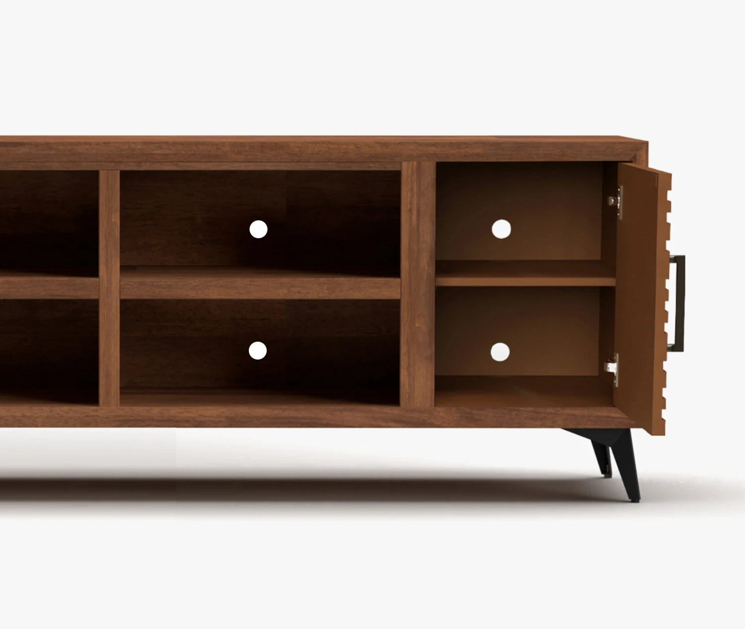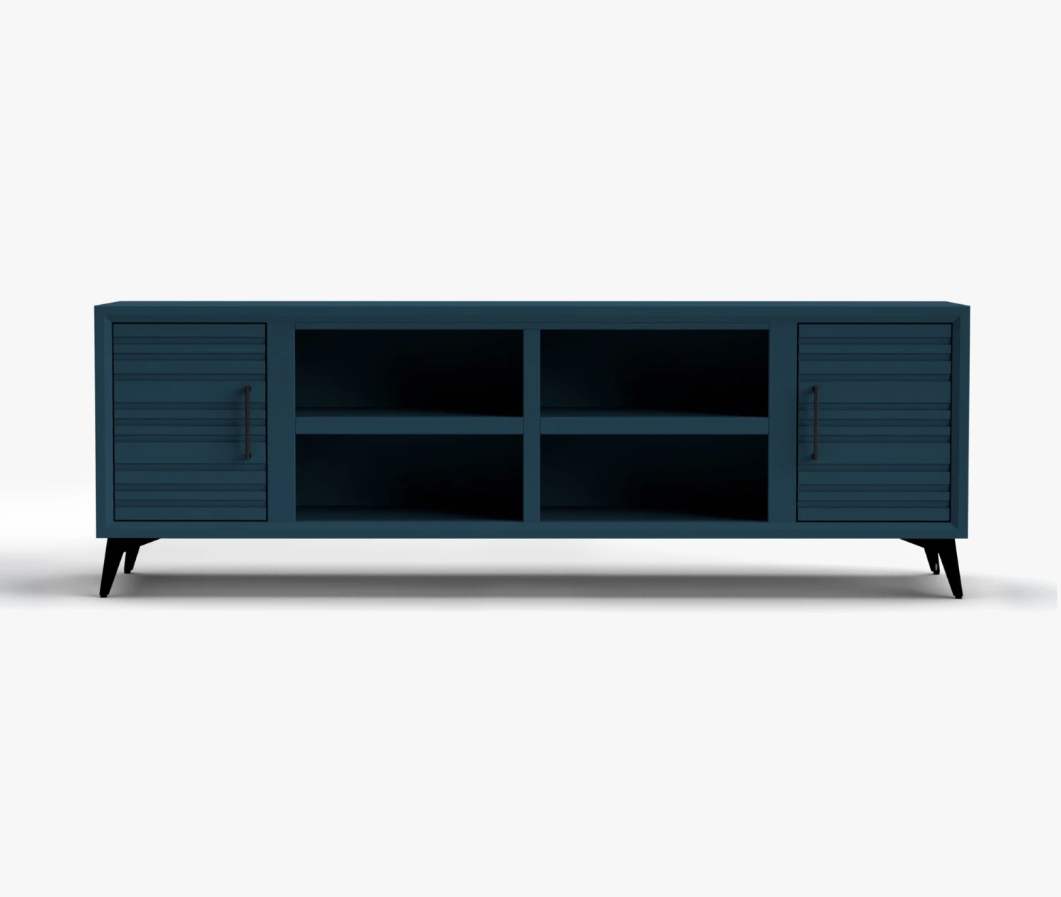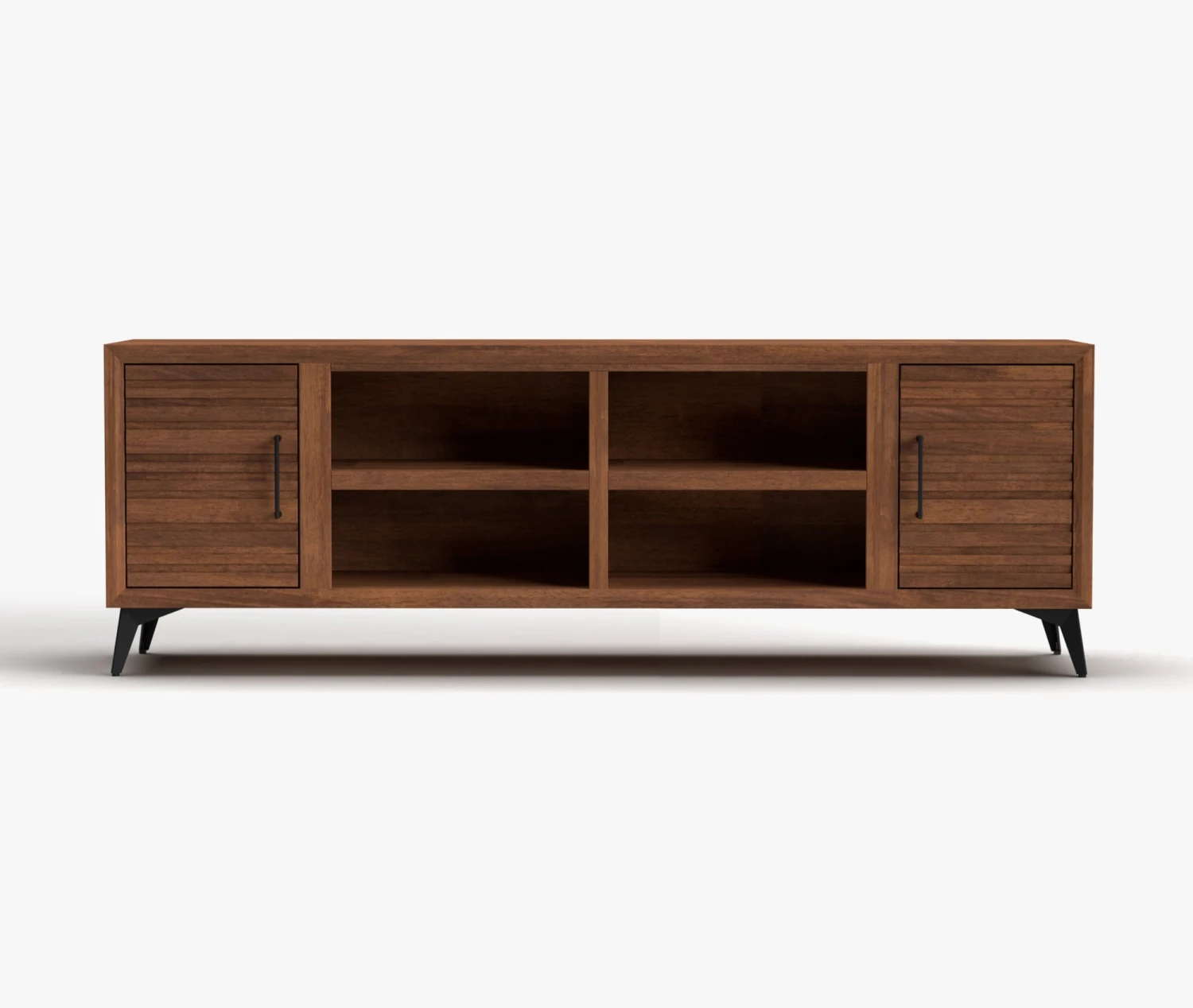 The Malibu TV Stand is smooth, sleek, and modern. Combining the uniquely designed slatted doors with metal feet brings a new look to any home. Malibu also matches anyone with high-tech media and gaming gear to bring their style into the future.