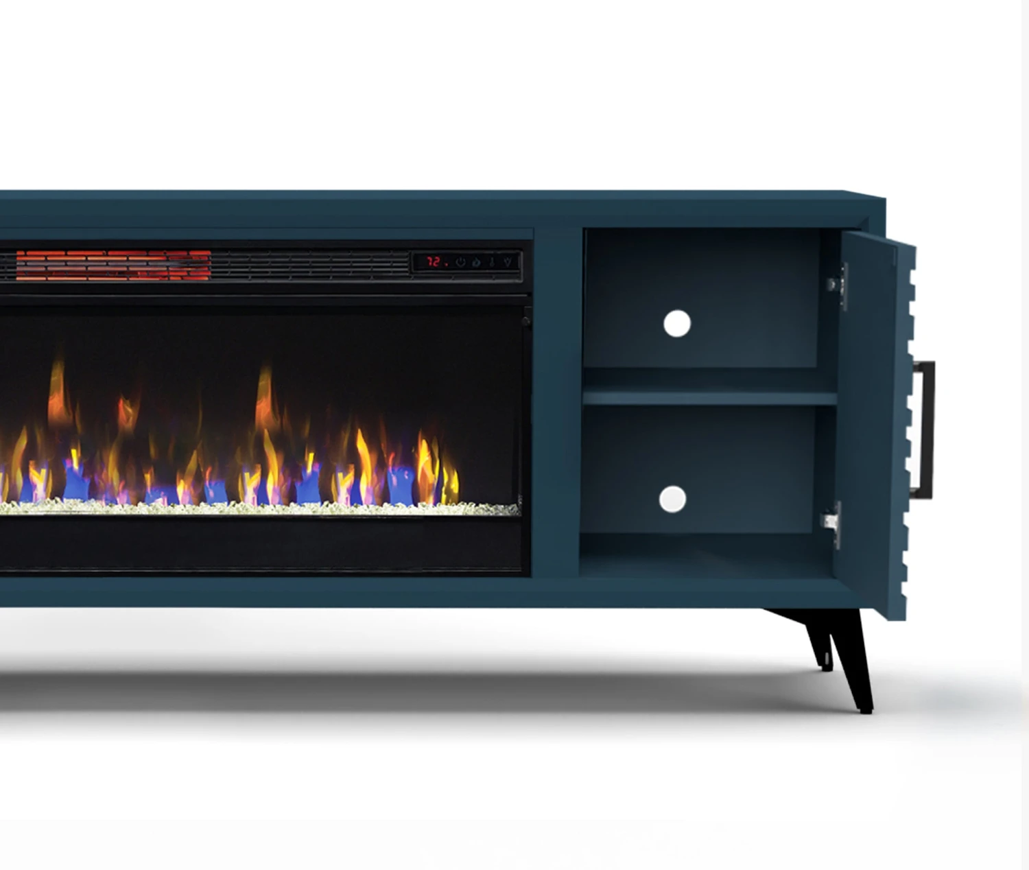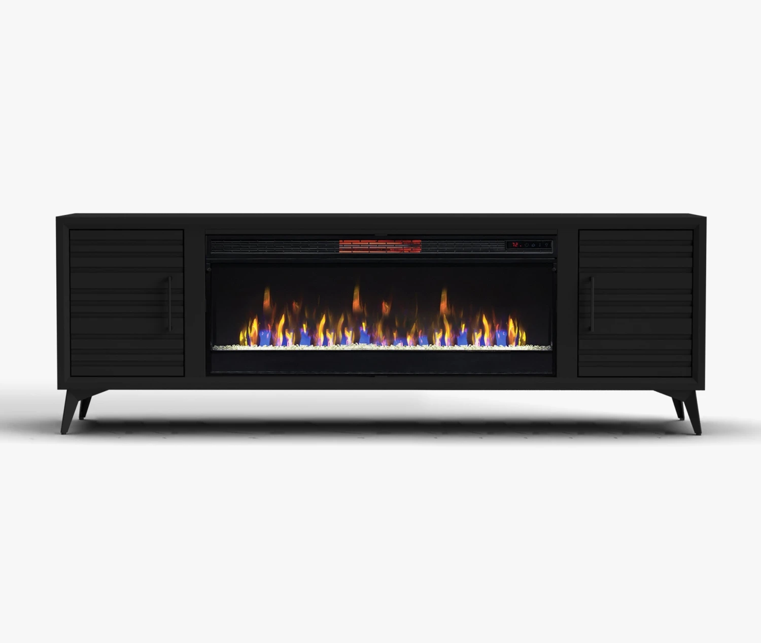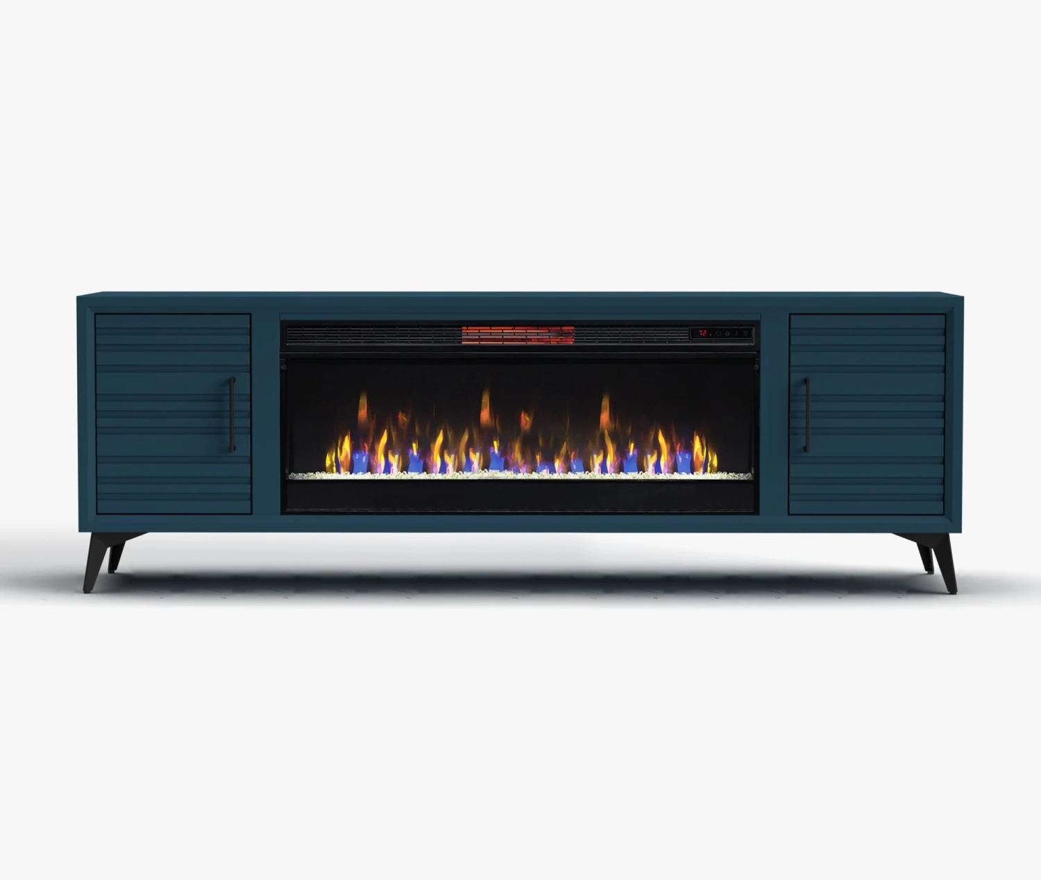 The Malibu Fireplace TV Stand is smooth, sleek, and modern. Combining the uniquely designed slatted doors with metal feet brings a new look to any home. Malibu also matches anyone with high-tech media and gaming gear to bring their style into the future.