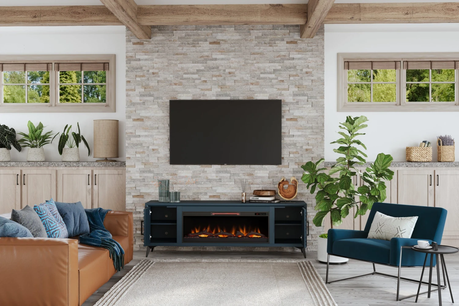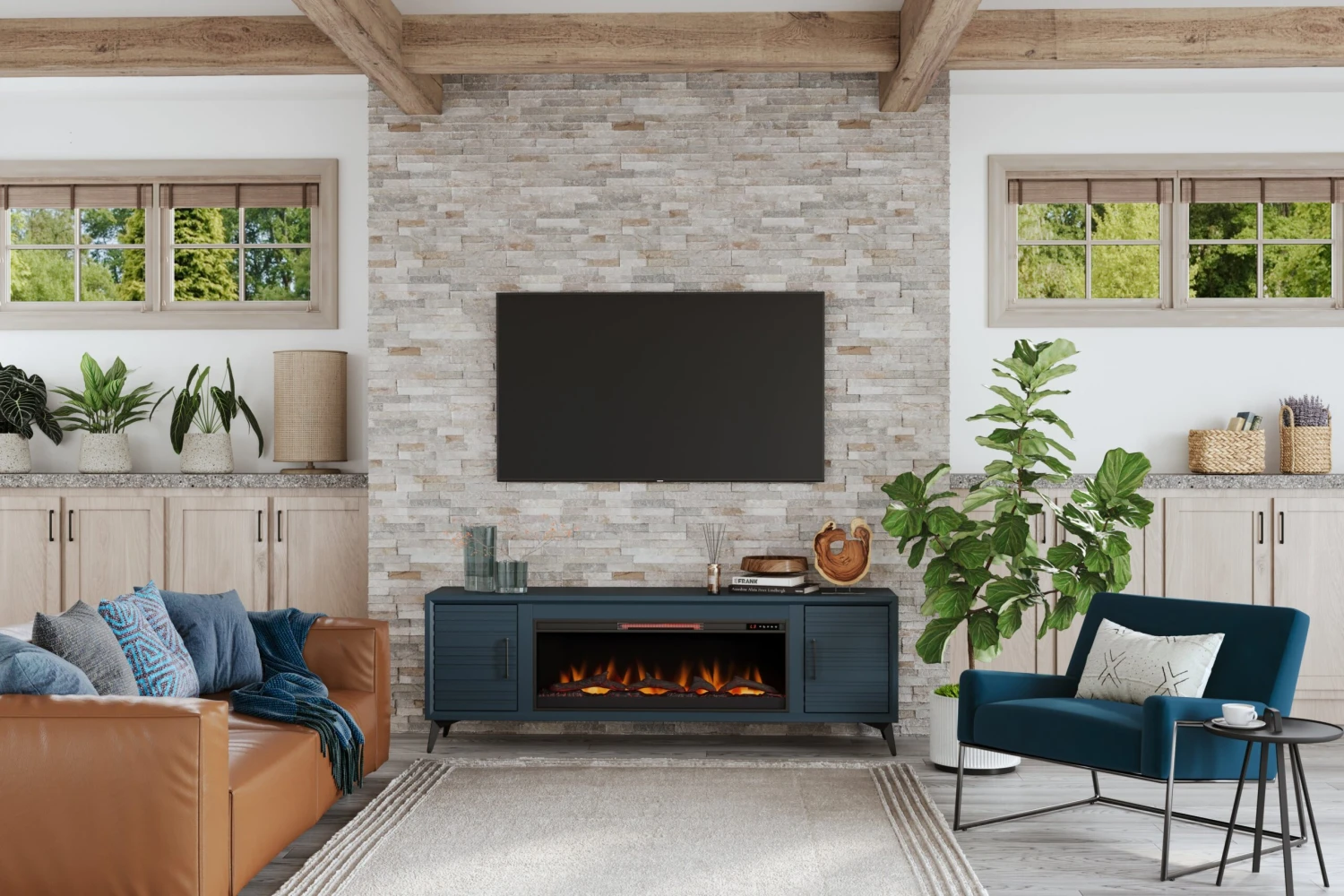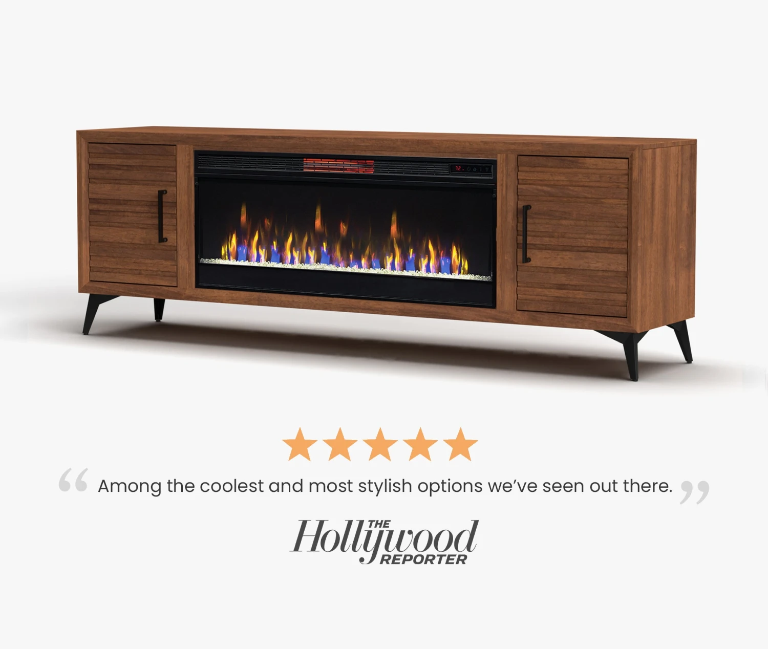 The Malibu Fireplace TV Stand is smooth, sleek, and modern. Combining the uniquely designed slatted doors with metal feet brings a new look to any home. Malibu also matches anyone with high-tech media and gaming gear to bring their style into the future.