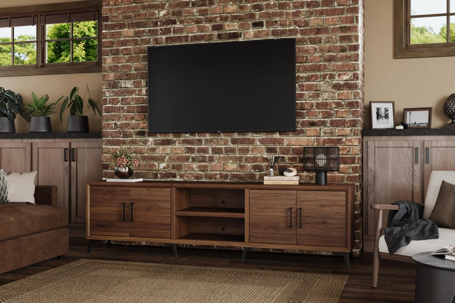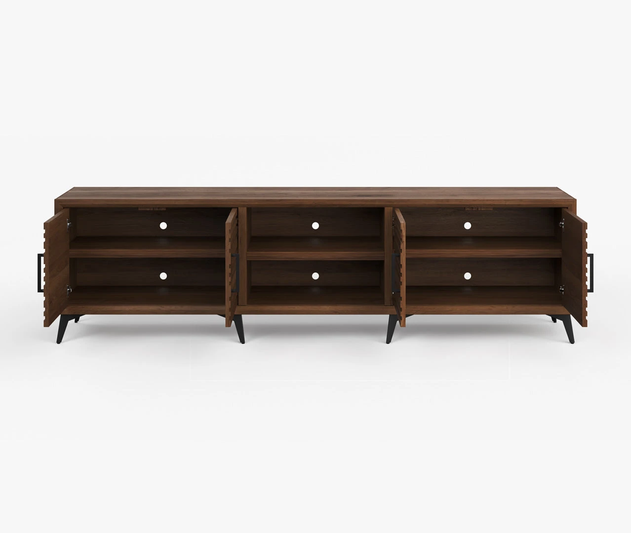 The Malibu 95″ TV Stand is smooth, sleek, and modern. Combining the uniquely designed slatted doors with metal feet brings a new look to any home. Malibu also matches anyone with high-tech media and gaming gear to bring their style into the future.