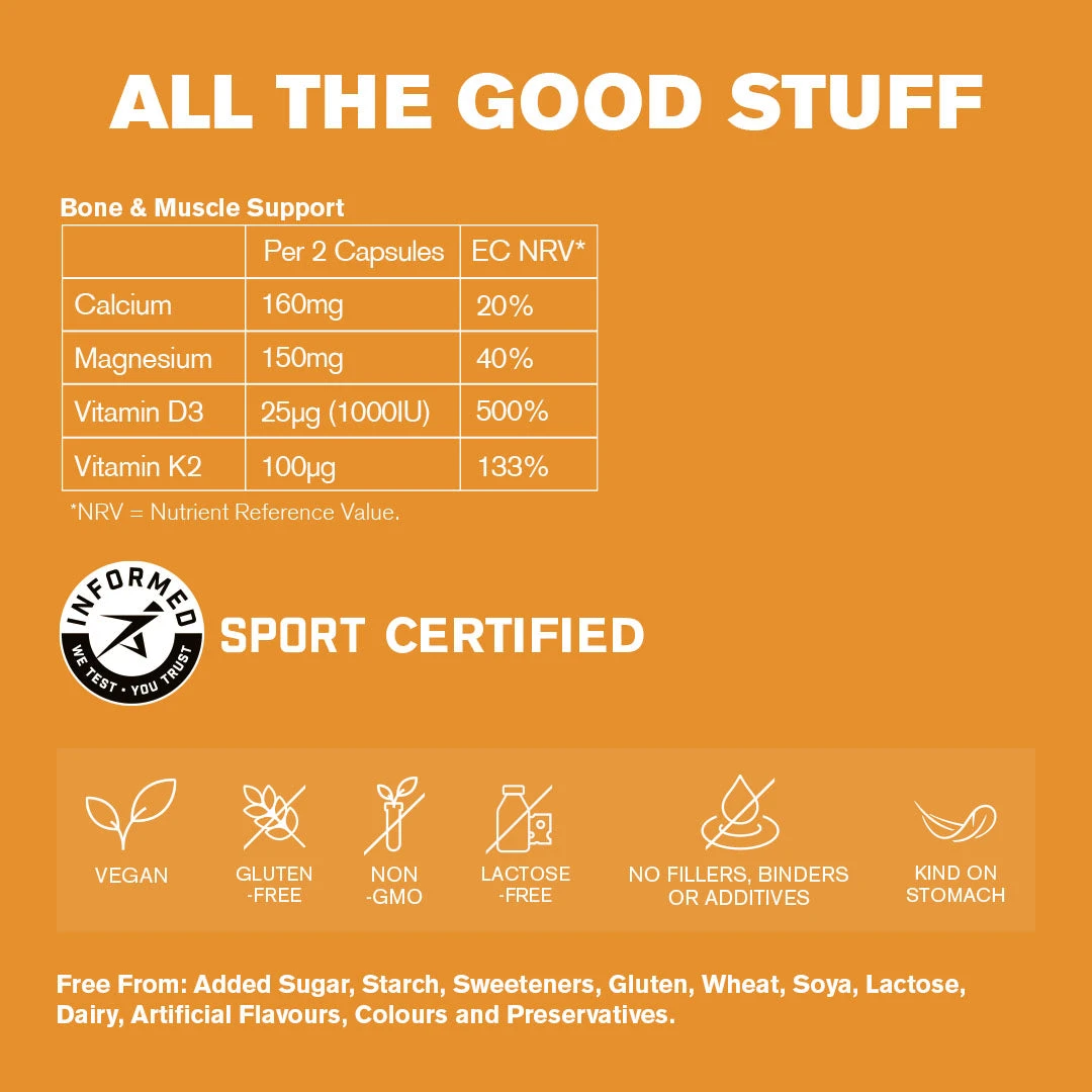 Bone & Muscle Support is an advanced daily multi-nutrient with highly absorbable Calcium, Magnesium, Vitamin D3 and Vitamin K2 to maintain healthy bones and muscles. It is ideal for men and women, for those with bone conditions, if you’re on a plant-based diet, and for women during pregnancy and through the menopause.
