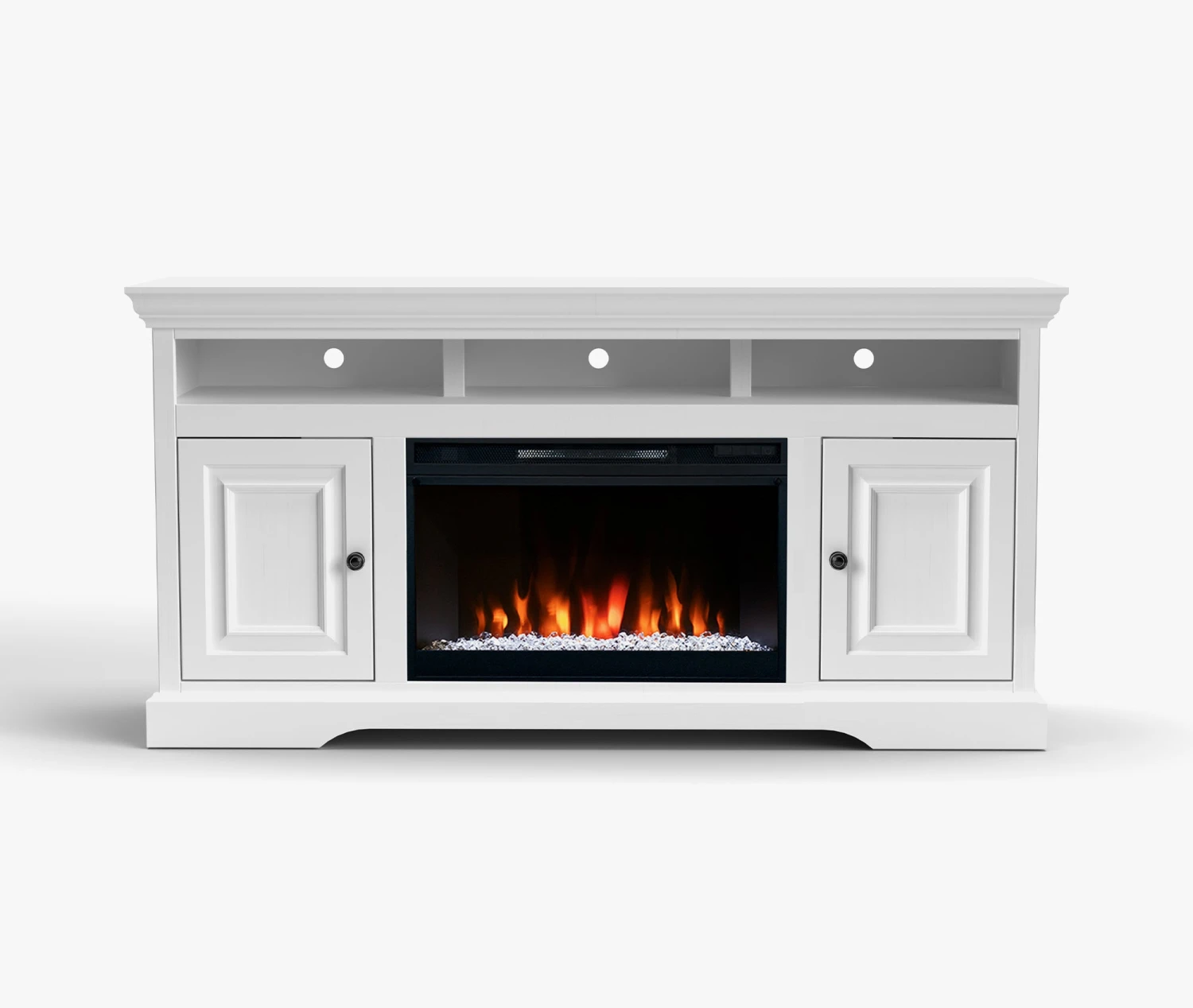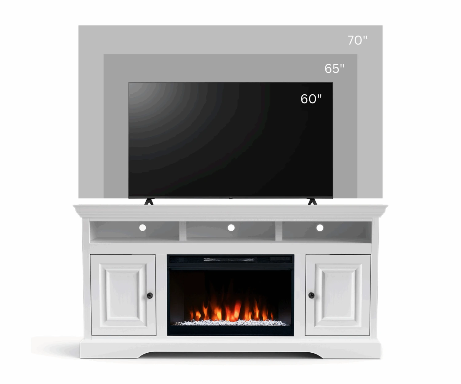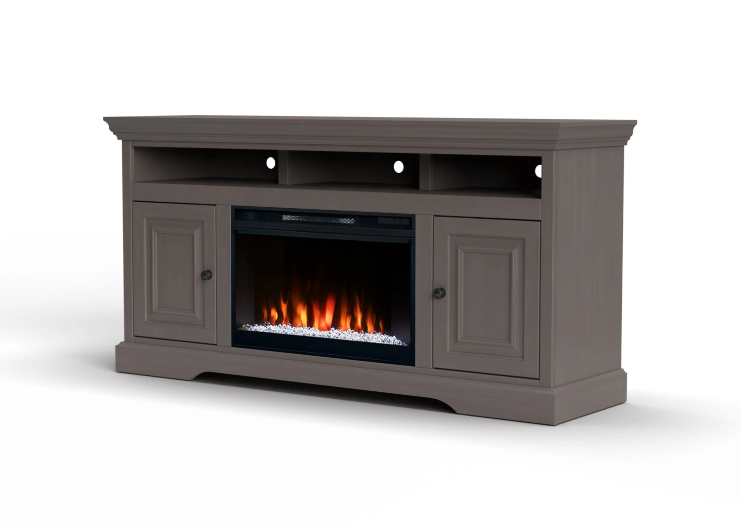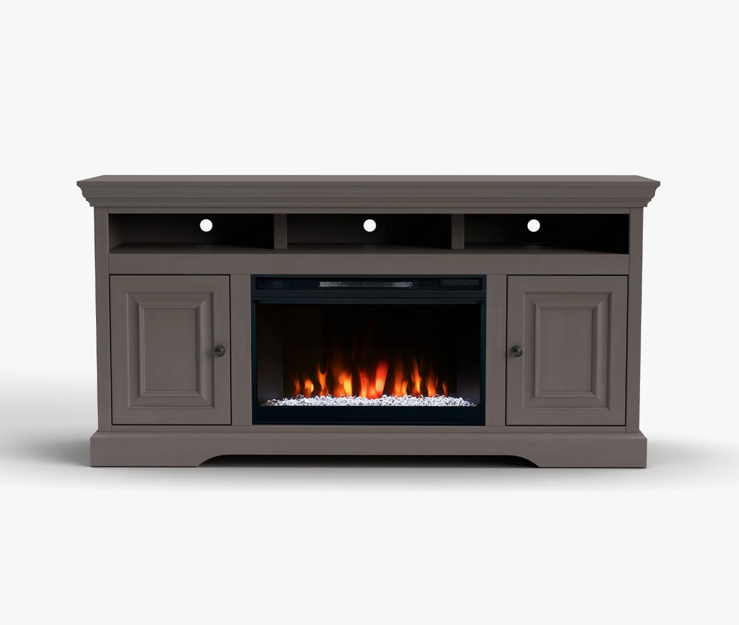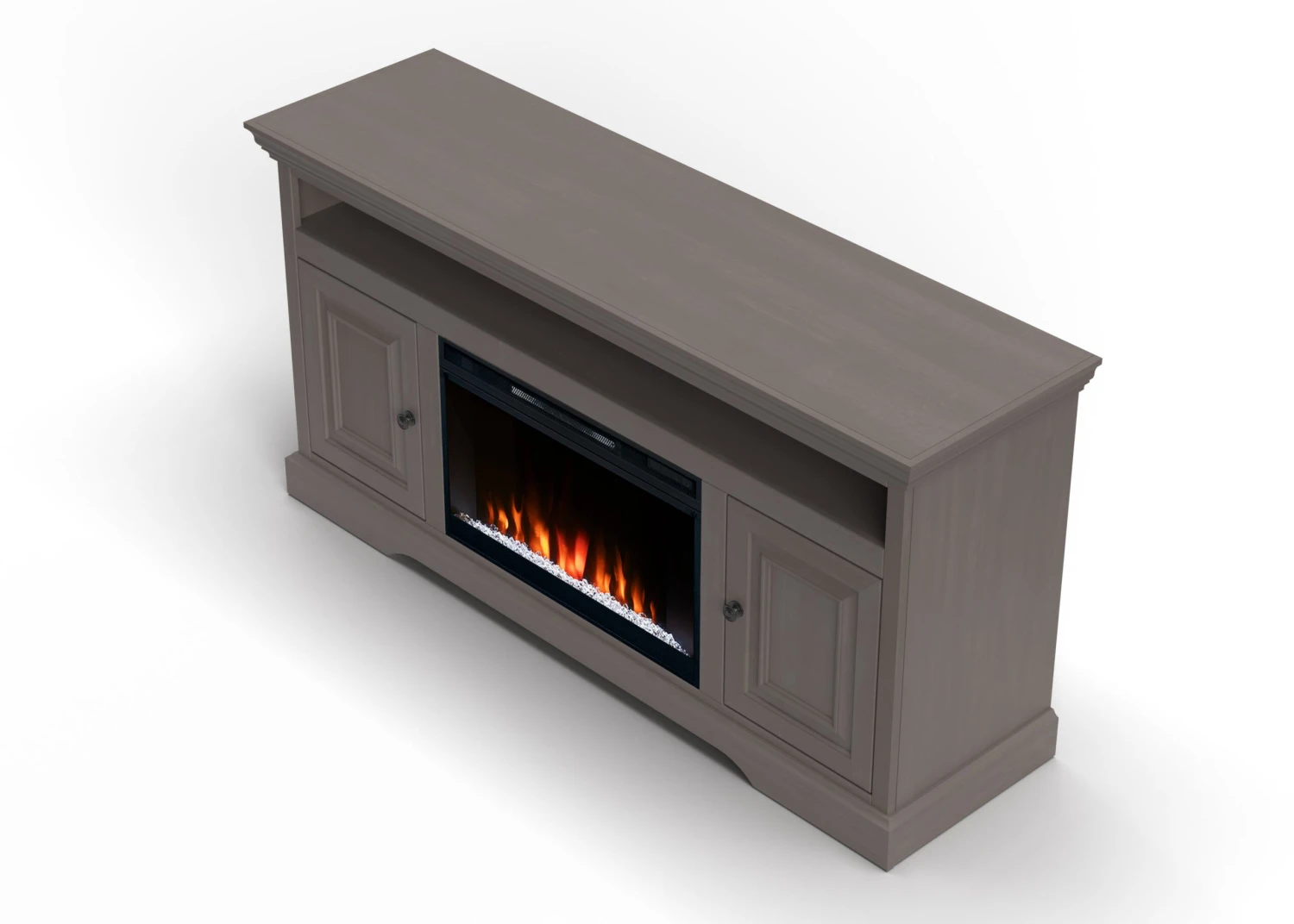 The Charleston Fireplace TV Stand takes traditional styling to the next level. Classic crown molding and ornate details help bring this piece to life in your home. The antique knobs and available finishes will enhance your living room area and be the focal point for entertaining.
