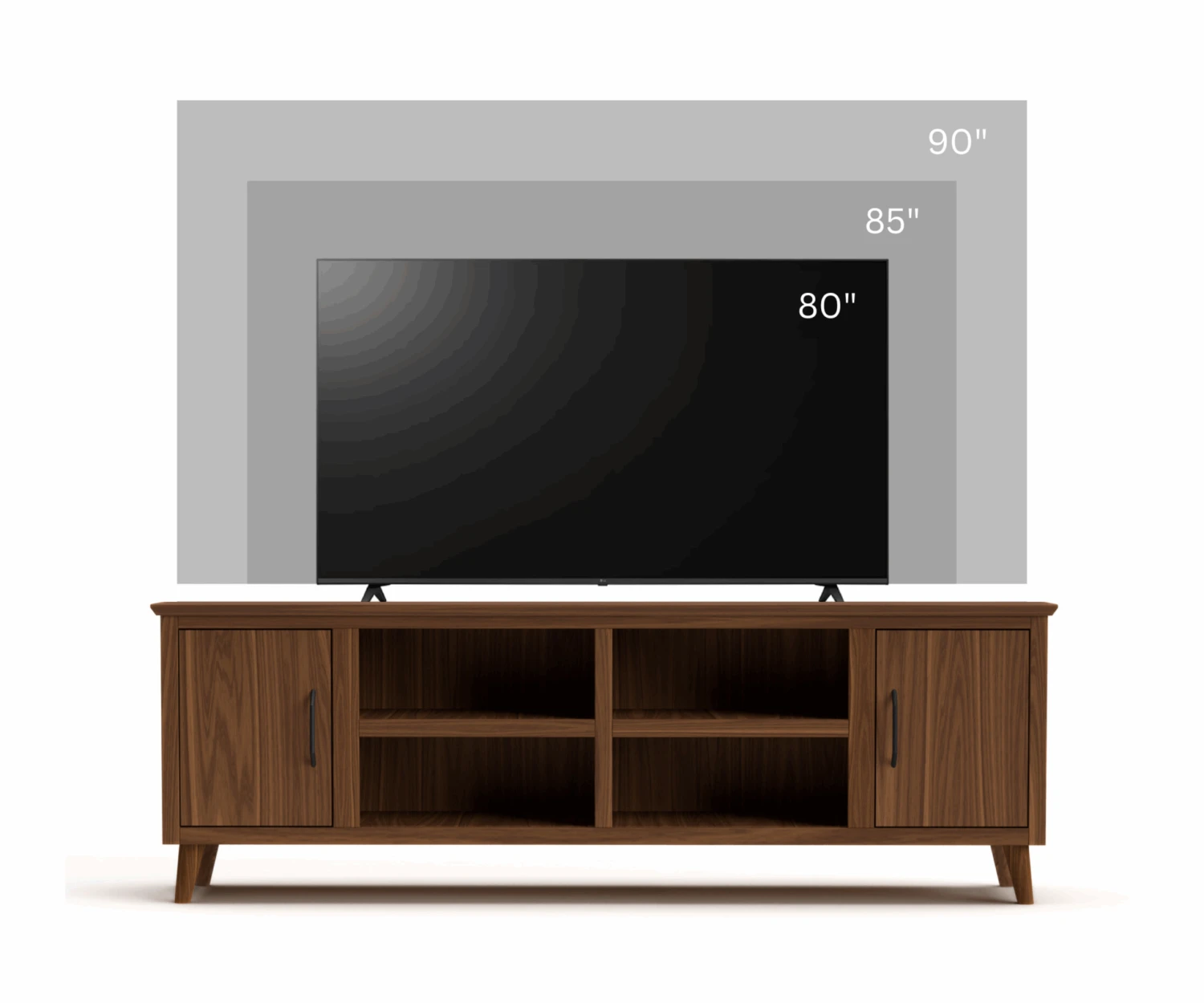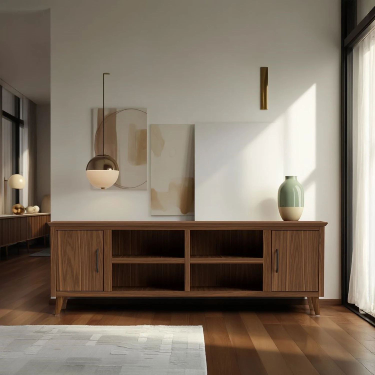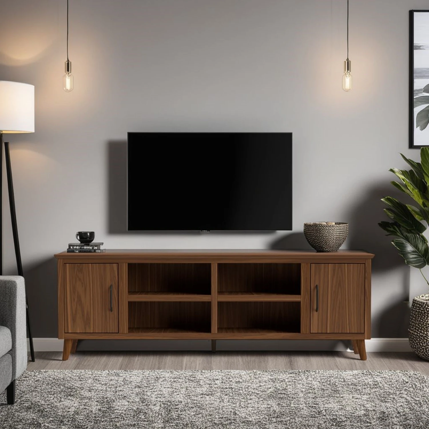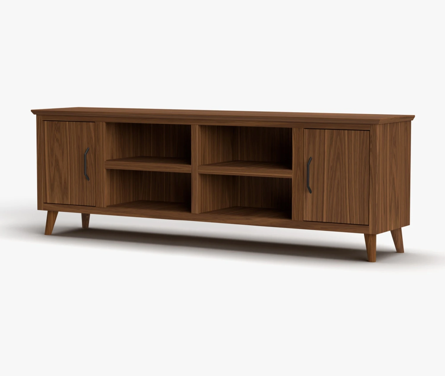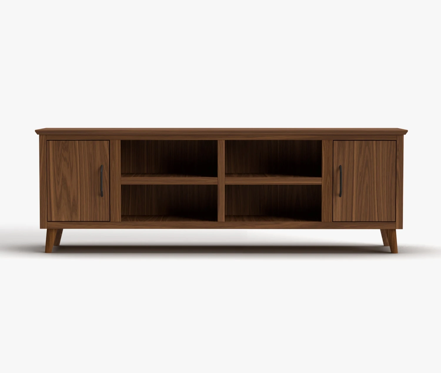 The Arcadia TV Stand showcases the best of the mid-century modern style. The beautifully grained Walnut wood highlights the natural beauty of this stand while the clean lines, large panel doors, and tapered feet bring added elegance to any home.