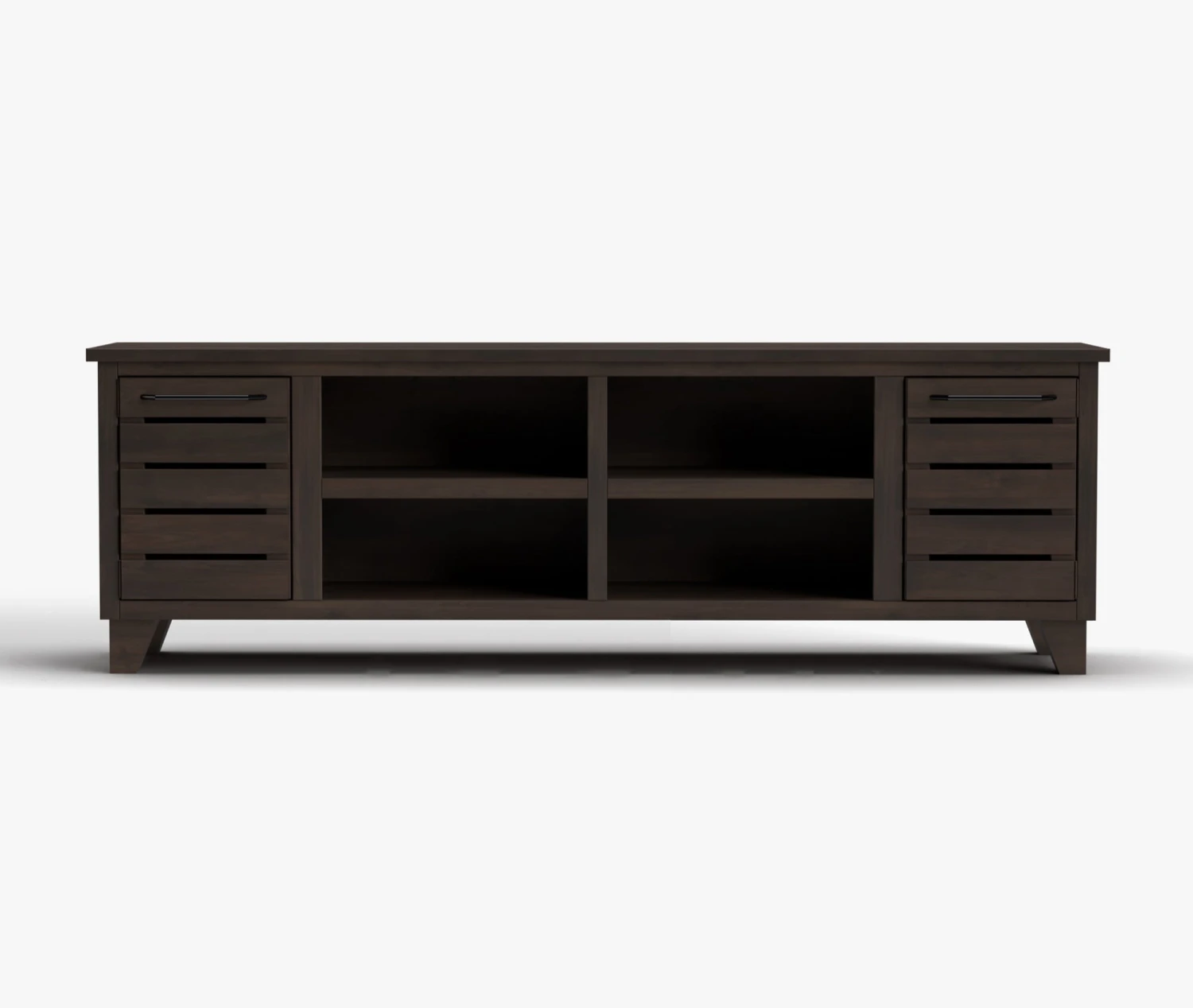 The Napa TV Stand is all about the laid-back, relaxed feel of being home. This casual style creates an inviting, yet chic look that appeals to your visual senses. The Knotty Alder wood shows off the beautiful grains and the open-slatted doors enhance the already great design and detail.