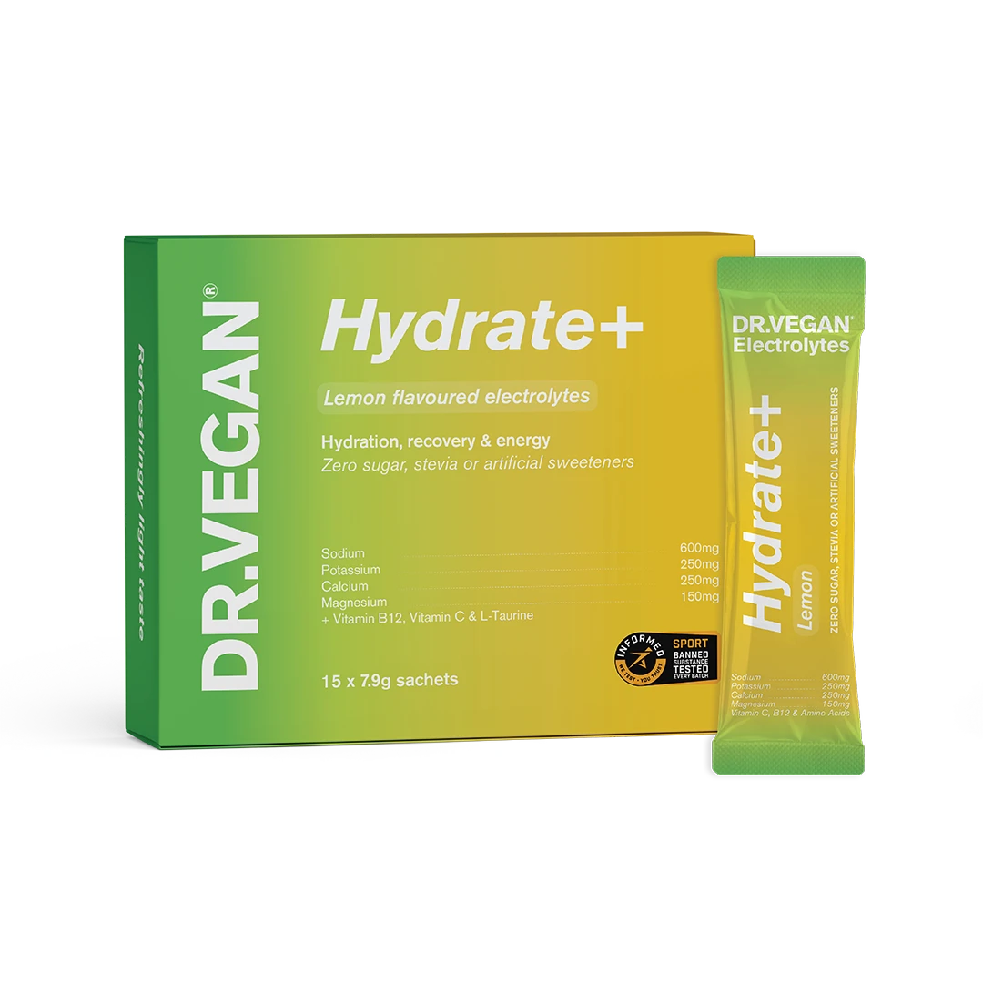 Hydrate+ is the optimal balance of Sodium, Potassium, Magnesium, Calcium, Vitamin B12, Vitamin C, and the amino acid L-Taurine, to rapidly replenish essential minerals for effective hydration, fluid balance, energy, focus, muscle performance, endurance, and recovery.