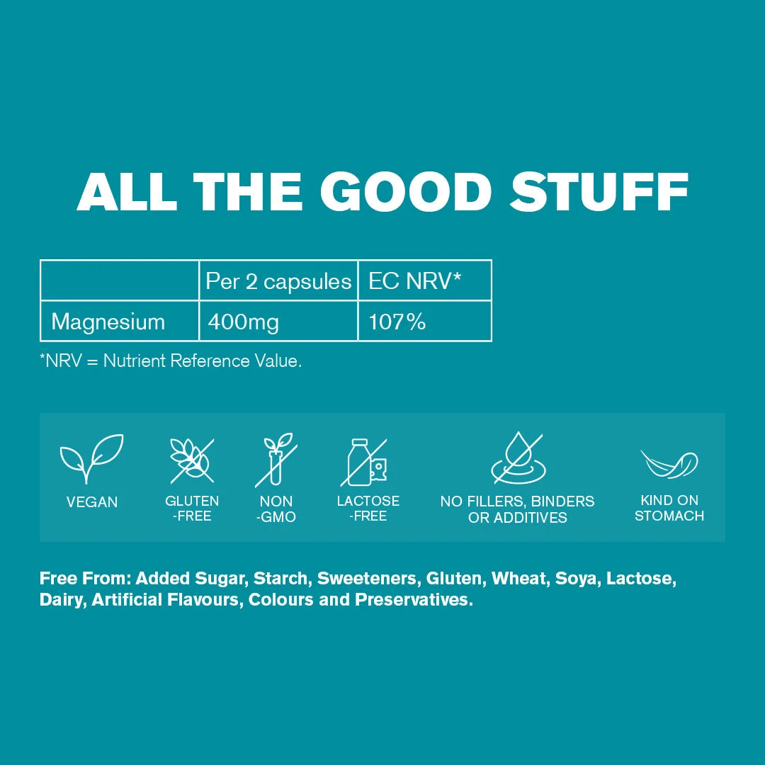 Our Magnesium Citrate contains 200mg elemental magnesium per capsule, in a highly bioavailable and effective form. Unlike standard supplements, it is free of any animal ingredients and nasty additives. Magnesium supports psychological wellbeing, a healthy mood, muscles and the nervous system, and is commonly taken as a soothing mineral before bedtime.
