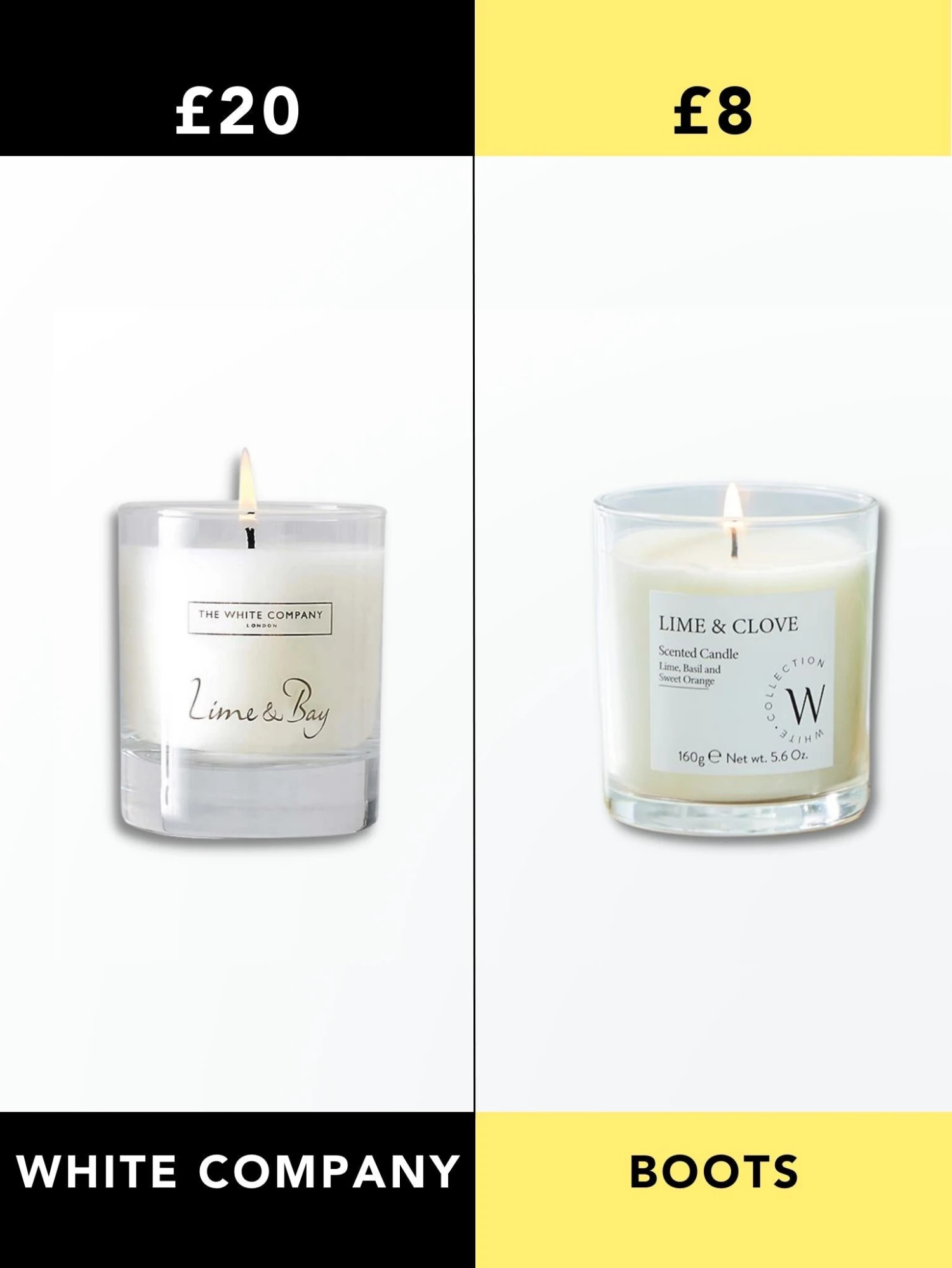 White Company Lime & Bay Candle Vs Boots Candle
